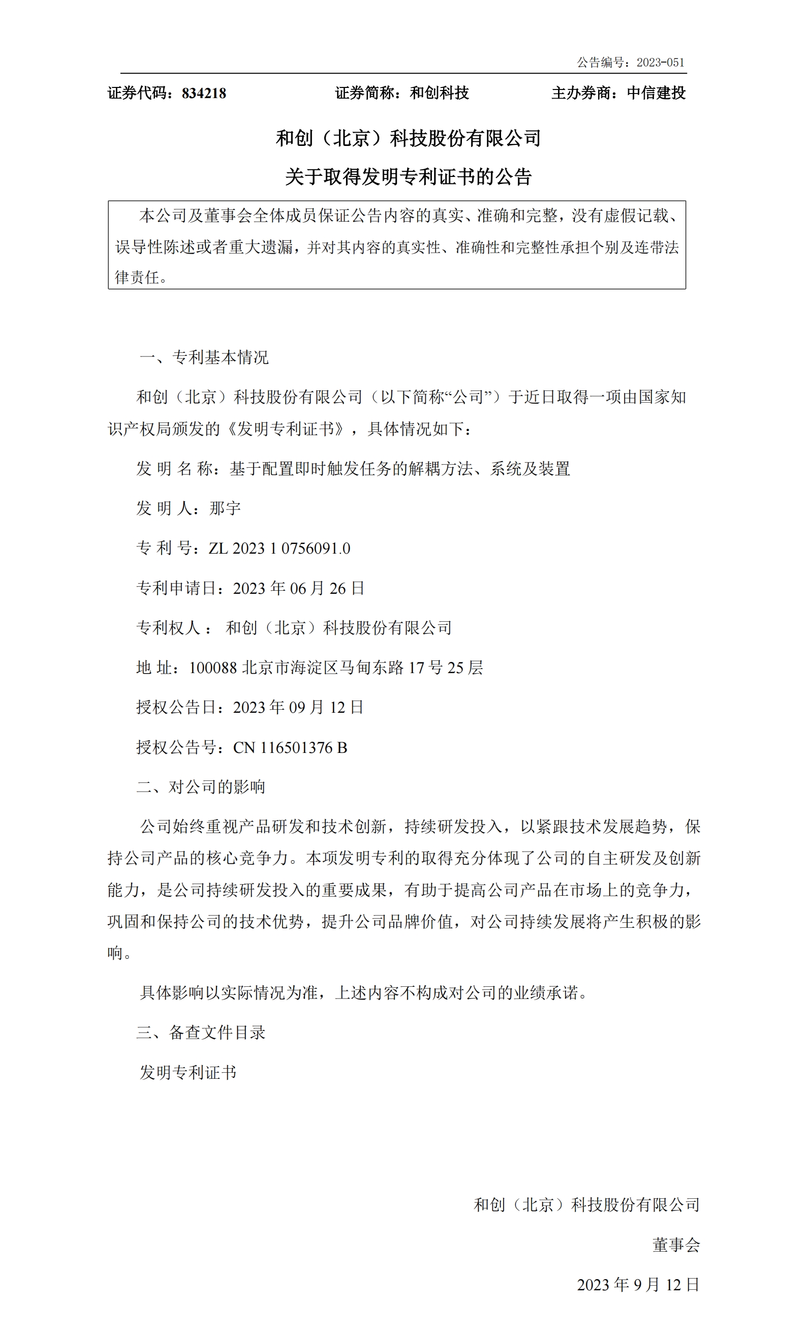 紅圈新聞?|?喜報(bào)!和創(chuàng)科技近日連續(xù)取得兩項(xiàng)最新發(fā)明專利!