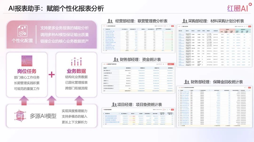 AI報(bào)表助手作為紅圈系統(tǒng)的新模塊,進(jìn)一步豐富了平臺(tái)的智能化分析功能,幫助企業(yè)在數(shù)據(jù)管理、應(yīng)收應(yīng)付、報(bào)表分析等方面實(shí)現(xiàn)更加高效的運(yùn)作。通過AI報(bào)表助手,紅圈系統(tǒng)不僅提升了成本控制的精確度,還優(yōu)化了付款流程和報(bào)表分析,幫助企業(yè)實(shí)現(xiàn)了更加智能化的管理。隨著數(shù)字化轉(zhuǎn)型的持續(xù)深入,AI報(bào)表助手將繼續(xù)發(fā)揮其在紅圈系統(tǒng)中的核心作用,推動(dòng)企業(yè)在復(fù)雜的市場(chǎng)環(huán)境中穩(wěn)步前行。