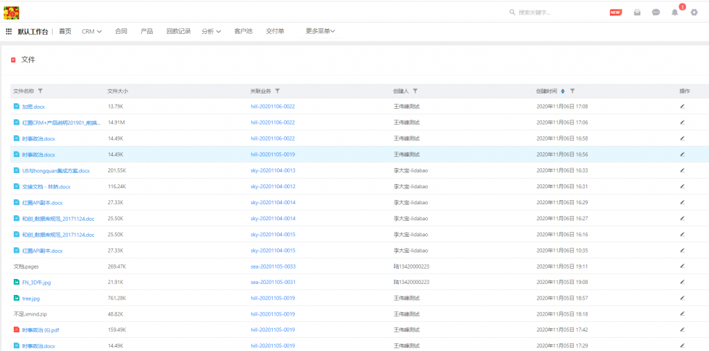 - 進入文件后,有管理權限的用戶可以看見全部文件,支持表頭篩選、下載及刪除