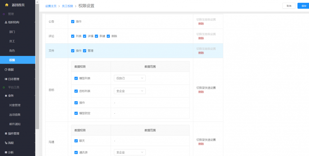 - 升級后,權限組設置中的應用操作,文件應用設置中增加了“管理”選項。