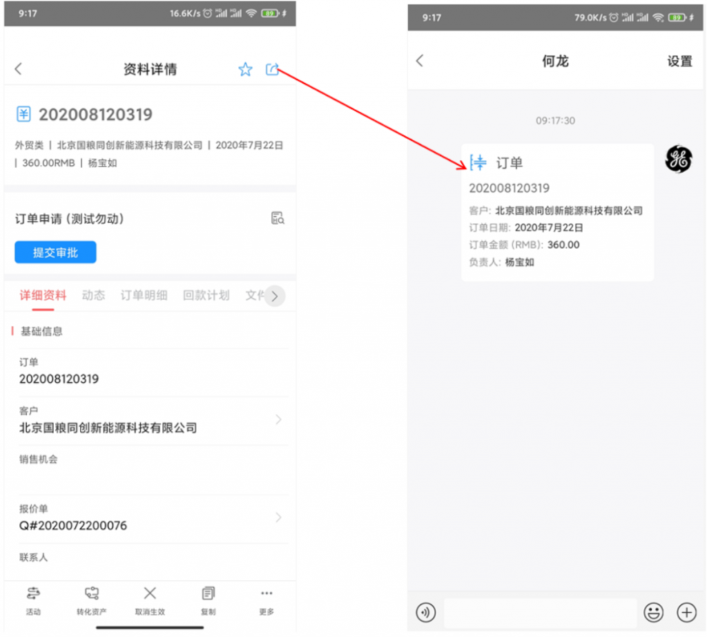 - 手機端可分享業務數據至IM,接受方可直接打開,但需要校驗數據權限