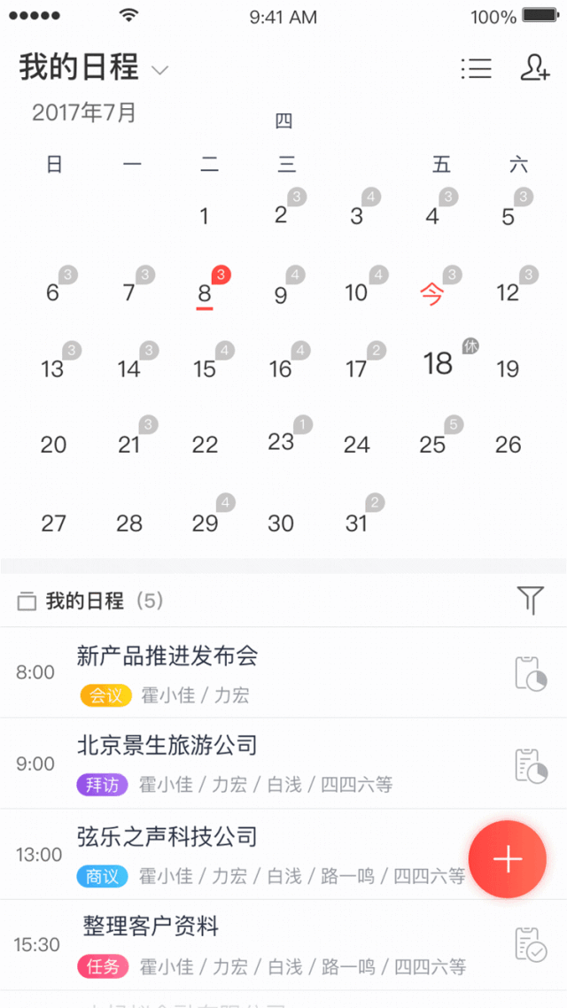 紅圈CRM+的日程管理功能,能夠幫助業務人員合理制定工作計劃,各項計劃完成情況全程記錄可追溯,業務人員每天拜訪了多少家客戶、新增了多少客戶資料、推進了哪個項目等,都能得到清晰的呈現,管理層可以據此對員工的能力和工作狀況進行科學評估,并結合業績數據對業務員進行及時指導。