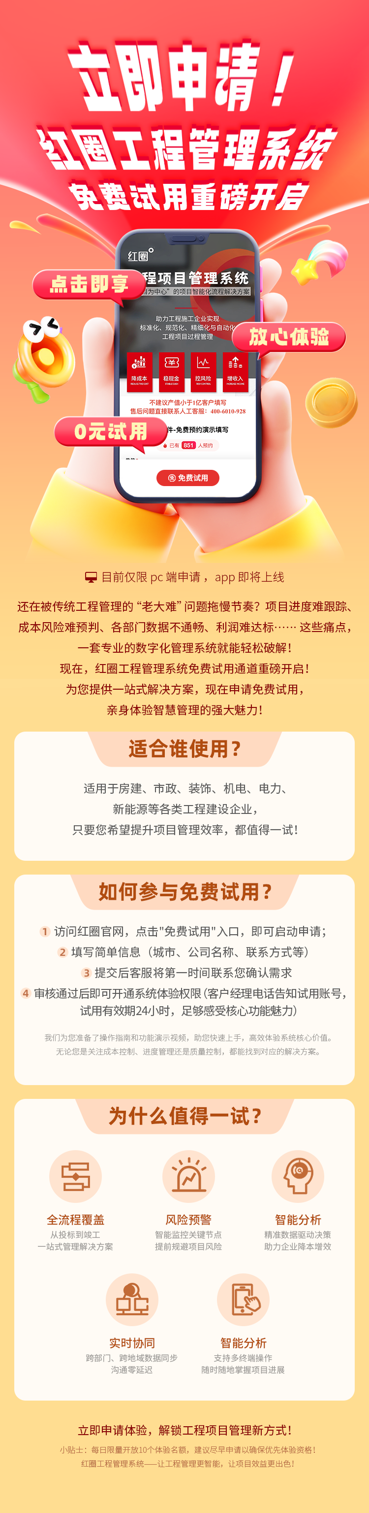 - 立即申請!紅圈工程管理系統(tǒng)免費(fèi)試用重磅開啟!