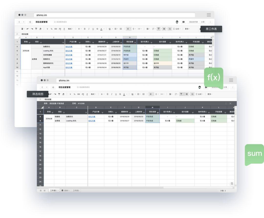 石墨表格,完美兼容本地 Excel 文件,導入導出流暢無損,無格式混亂;提供的 6 大函數類別,400+公式,基本可以覆蓋 90%主流辦公軟件;支持單元格鎖定,可根據不同協作者開放不同層級的查看/編輯權限;支持篩選視圖,協作者可獨立篩選數據而不互相干擾。