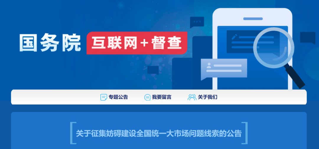 9月25日,國務(wù)院辦公廳發(fā)布《關(guān)于征集妨礙建設(shè)全國統(tǒng)一大市場問題線索的公告》。公告明確,為貫徹落實(shí)《中共中央 國務(wù)院關(guān)于加快建設(shè)全國統(tǒng)一大市場的意見》,推動(dòng)解決妨礙建設(shè)全國統(tǒng)一大市場的突出問題,國務(wù)院“互聯(lián)網(wǎng)+督查”平臺(tái)從即日起面向社會(huì)征集七個(gè)方面的問題線索和意見建議: