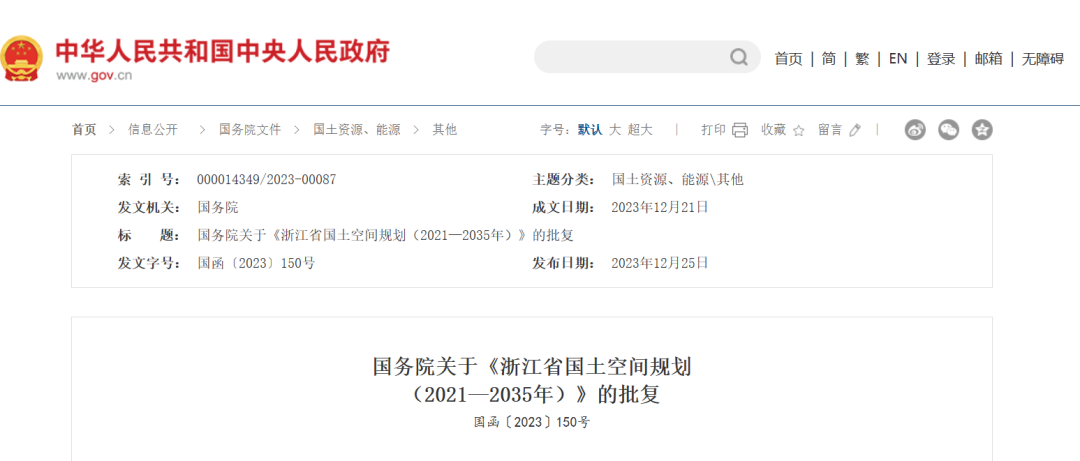 國務(wù)院關(guān)于《浙江省國土空間規(guī)劃