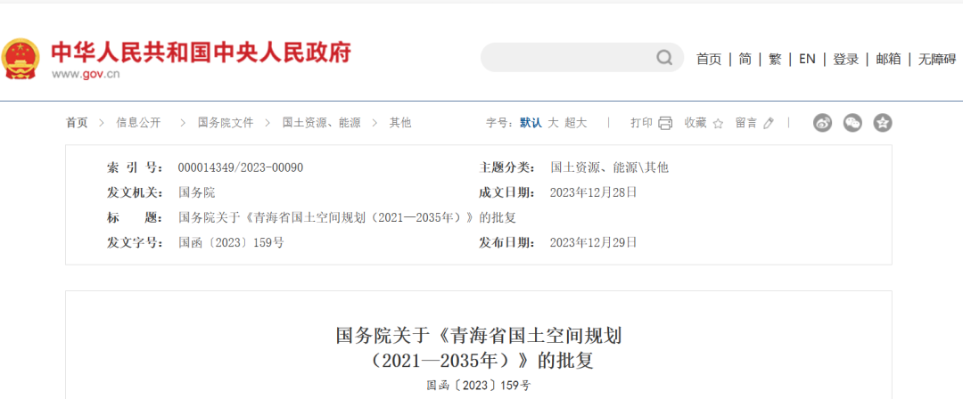 國務(wù)院關(guān)于《青海省國土空間規(guī)劃
