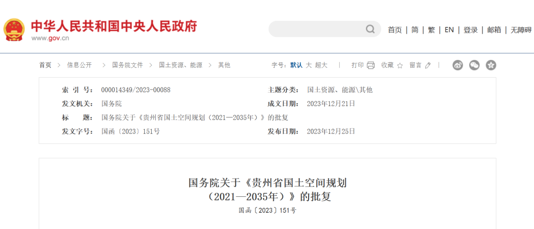 國務(wù)院關(guān)于《貴州省國土空間規(guī)劃