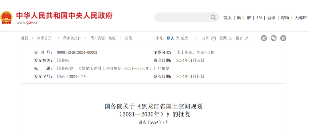 國務(wù)院關(guān)于《黑龍江省國土空間規(guī)劃