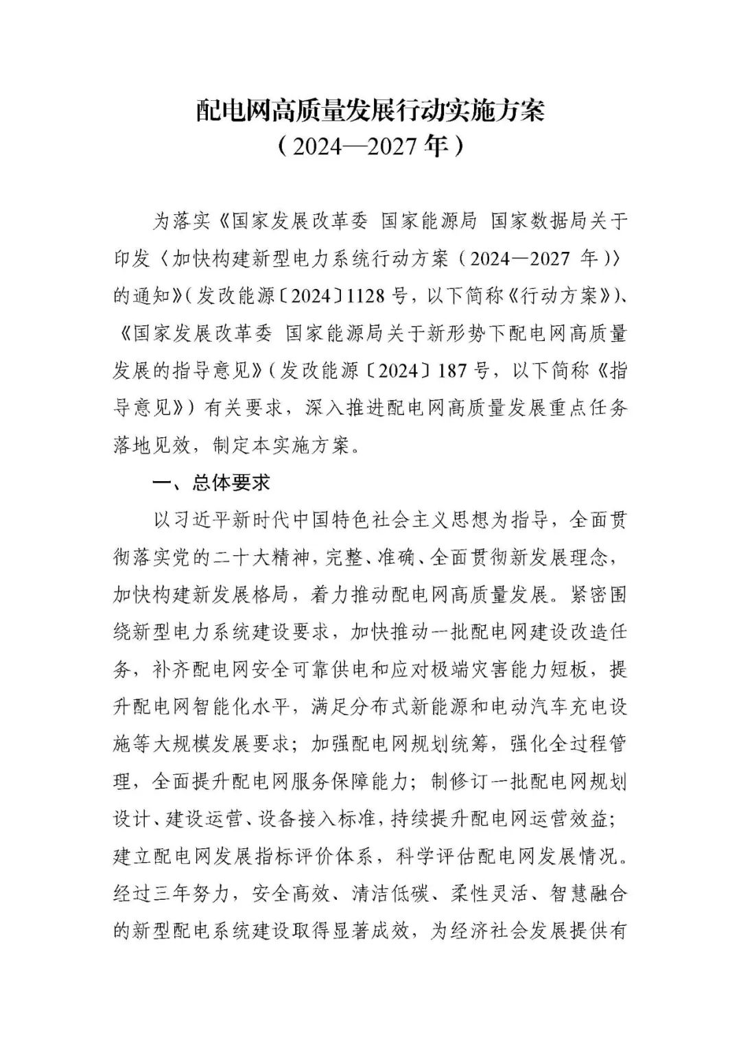 附件:《配電網高質量發展行動實施方案(2024—2027年)》
