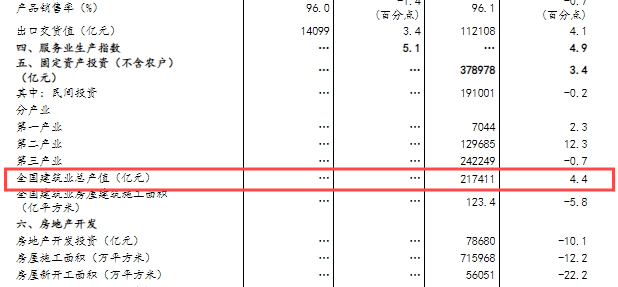 國家統計局:全國建筑業前三季度總產值217411億元!同比增長4.4%!