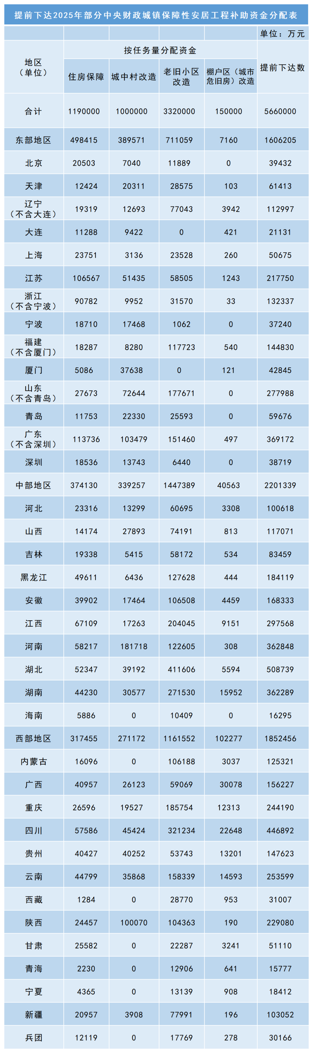 提前下達2025年部分中央財政城鎮(zhèn)保障性安居工程補助資金分配表