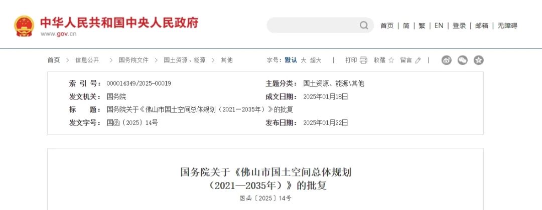國務院關于《佛山市國土空間總體規劃(2021—2035年)》的批復