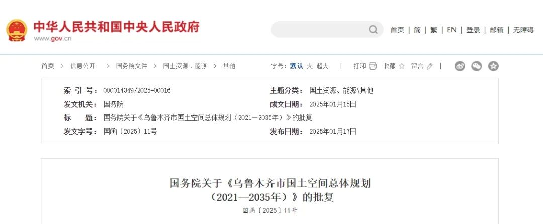 國務院關于《烏魯木齊市國土空間總體規劃(2021—2035年)》的批復