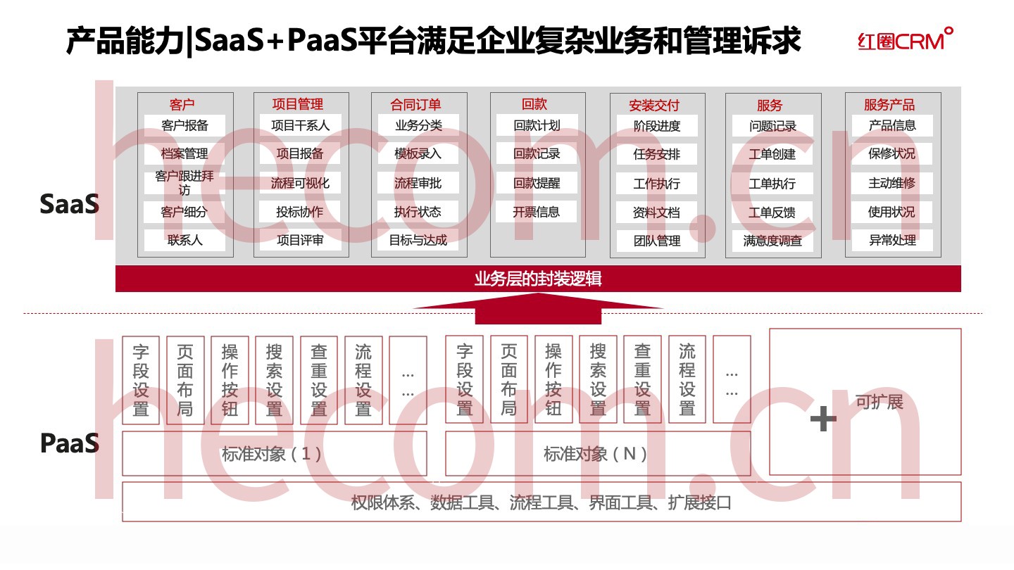 紅圈PaaS是由紅圈研發(fā)團隊自主研發(fā),通過組件化方式,為企業(yè)提供定制化服務的平臺。通過靈活配置,深入領域,精準匹配企業(yè)的業(yè)務特性,貫穿企業(yè)的行為、過程與結(jié)果,為企業(yè)管理提供有效的個性化解決方案。