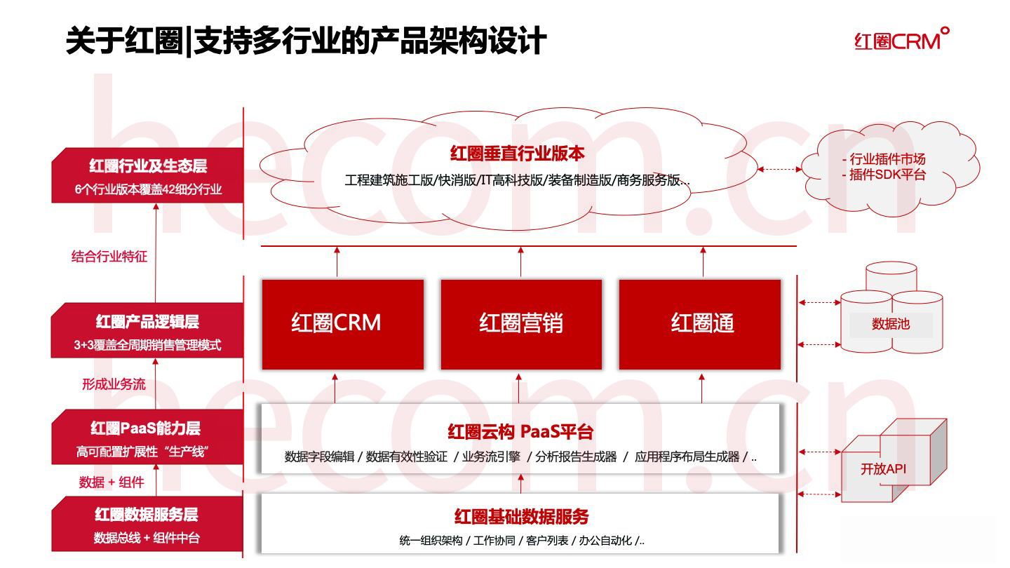 紅圈通過自有 PaaS 平臺真正實現(xiàn)了垂直化量身定制和深耕行業(yè)細分,實現(xiàn)了為企業(yè)CIO的營銷賦能。