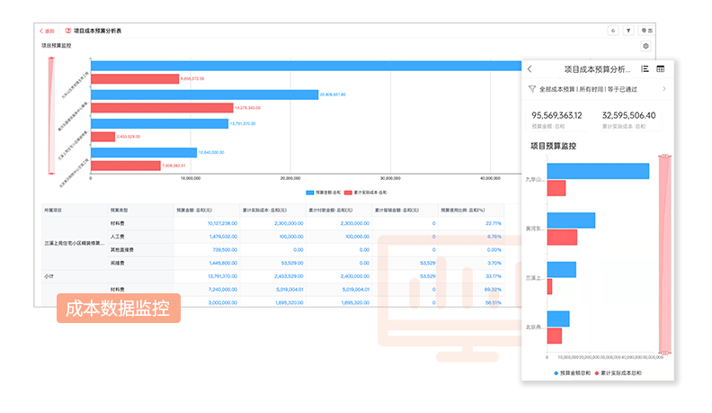 紅圈系統能夠完整呈現項目的成本計劃執行情況。實現成本計劃執行進度、成本合同結算進度、成本合同結算付款進度動態可視,幫助審批節點作出合規性審批判斷。